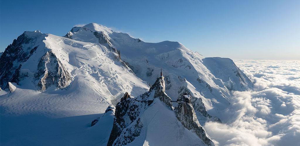 Depuis Chamonix (1035 m), survolez la forêt pour atteindre en 10 minutes le Plan de l’Aiguille (2317 m). À votre droite le Glacier des Bossons, face à vous le Mont-Blanc (4808,72m), sur votre gauche l’Aiguille Verte, les Drus et les Aiguilles de Chamonix. Empruntez alors un second téléphérique, qui vous emmène en 10 minutes à 3777 m d’altitude, au-dessus des séracs, du glacier des Pélerins et des glaciers suspendus en face nord de l’Aiguille du Midi. Expérimentez la très haute altitude.
